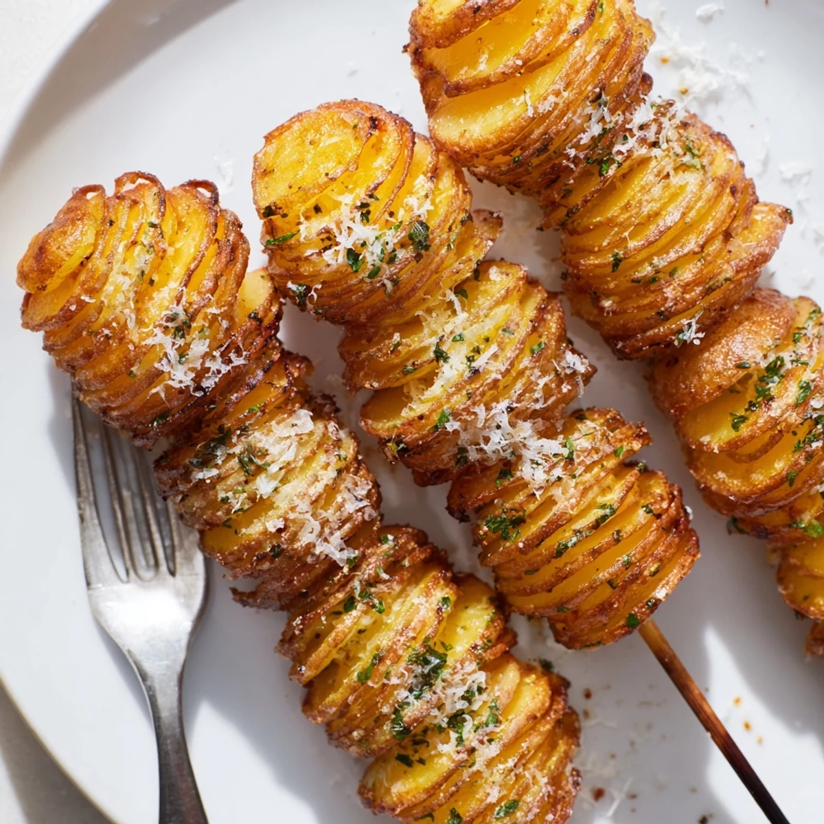 - Place the skewered potatoes in the air fryer basket, making sure they do not touch. Air-fry for 20–25 minutes, turning halfway through, until golden and crispy.