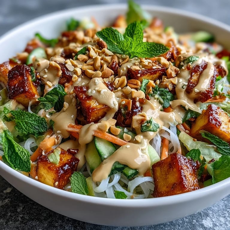 This recipe is a template, not a law. I've served it with grilled chicken instead of tofu, with thinly sliced radishes for extra crunch, and once with a handful of finely chopped lettuce mixed into the noodles. The core of the dish—fresh vegetables, a creamy peanut sauce, tender noodles—stays the same, but everything else shifts based on what's in your kitchen or what you're craving that day.