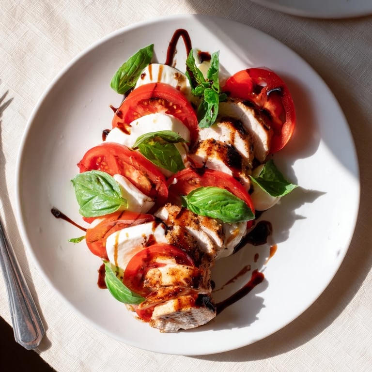 Save Summer afternoons in my kitchen are never complete without the smell of chicken hitting a hot grill pan. One particularly warm Saturday, I threw open the windows, turned on some music, and realized I had tomatoes that needed using and a ball of mozzarella sitting in the fridge. What started as a need to clear out produce turned into one of my most requested meals. The sizzle of seasoned chicken, the bright red of sliced tomatoes, and that first bite of creamy mozzarella with basil became a weekly ritual. This salad isn't just food, it's proof that simple ingredients can feel like celebration.