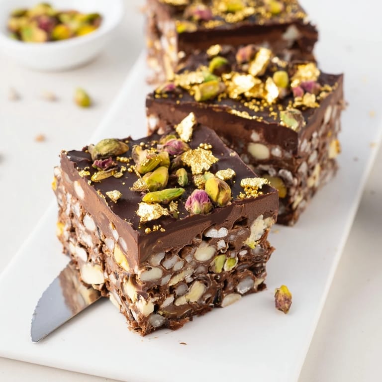 For a vegan version, use plant-based butter and cream, and dairy-free chocolate. Swap pistachios for almonds or hazelnuts if preferred. Serve chilled or at room temperature for varied textures. Pairs beautifully with Arabic coffee or mint tea.