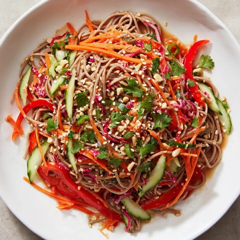 Save There's something almost magical about the moment a bowl of cold noodles hits the table on a sweltering afternoon—how the steam rising from a hot kitchen suddenly becomes irrelevant when you twirl those silky strands around your chopsticks and taste that punch of ginger and sesame. I discovered this salad completely by accident when I was trying to cool down one summer, refusing to turn on the oven, and found myself standing in front of an open fridge thinking there had to be something better than cereal for dinner. What started as improvisation became my go-to answer whenever someone asks what I make when I can't be bothered with heat but don't want to settle for sad.