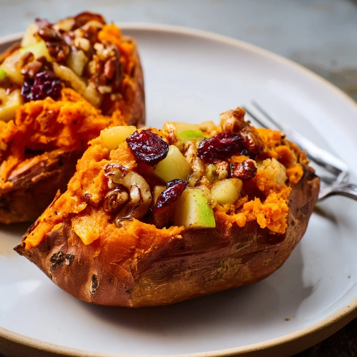 Save Cozy, colorful, and loaded with sweet, tart, and spiced flavors, these twice-baked sweet potatoes are a perfect fall and holiday side dish.