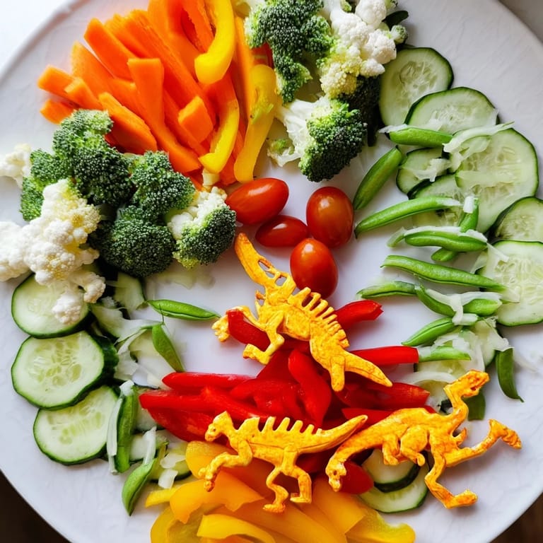 Wash and prepare vegetables carefully to ensure freshness and crispness. Use a sharp knife and small cookie cutters to create fun dinosaur-themed shapes from peppers or cucumbers, adding extra detail to your fossil fossil display. Keep vegetables chilled until serving to maintain their vibrant crunch.