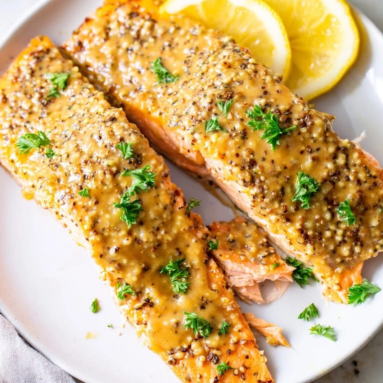 Save I discovered honey mustard salmon by accident on a Tuesday evening when I had salmon thawing and absolutely nothing else that sounded appealing in the fridge. The combination of Dijon's sharp bite with honey's sweetness felt like it shouldn't work, but the moment that golden sauce hit the hot fillets, the kitchen filled with this incredible caramelized aroma that made me stop and pay attention. My partner came home to find dinner already on the table, and somehow this thrown-together meal became the thing they actually requested weeks later.