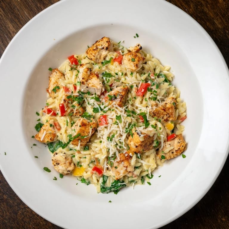 Save A creamy, spicy, and comforting one-pot meal combining tender chicken, smoky Cajun spices, velvety Alfredo sauce, and orzo pasta for a quick weeknight dinner.