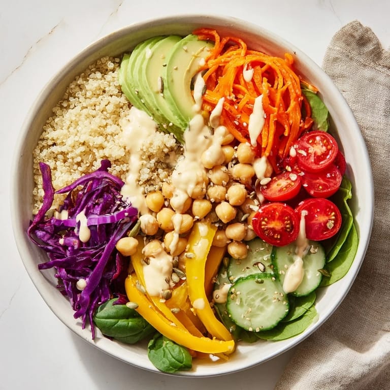 The beauty here is that nobody will notice if you swap vegetables based on what is actually in your crisper drawer. I have used roasted sweet potato in winter and fresh corn in summer, and the bowl still works because the real star is that tahini dressing and how everything looks arranged together.